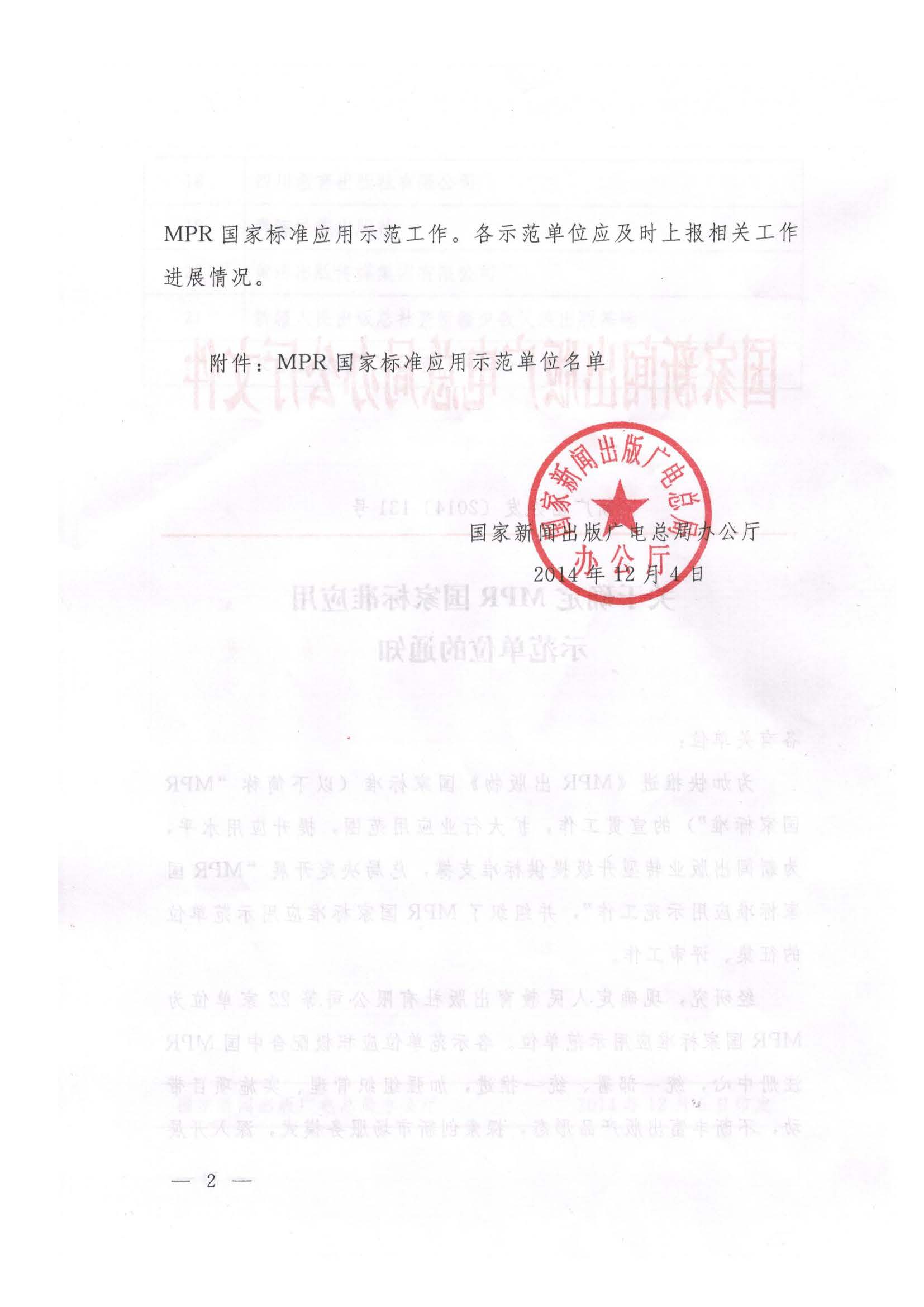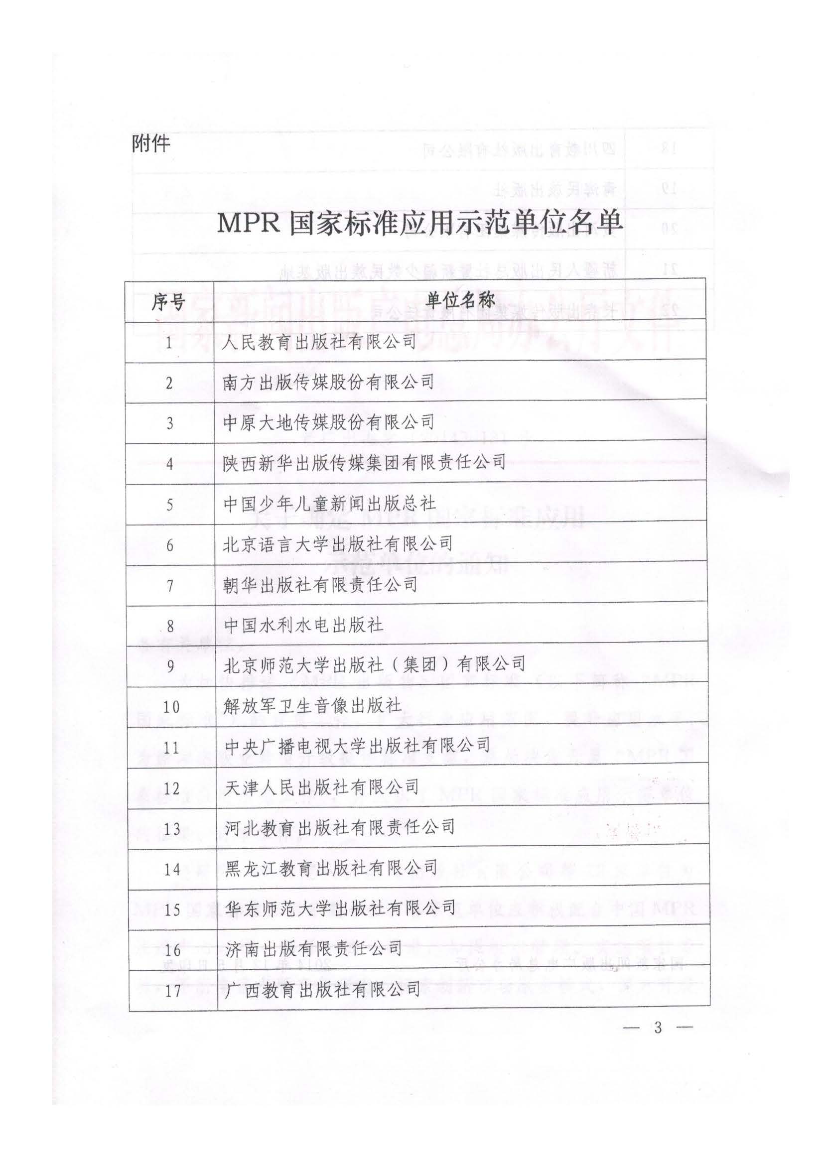 《关于确定MPR国家标准应用示范单位的通知》新广出办发