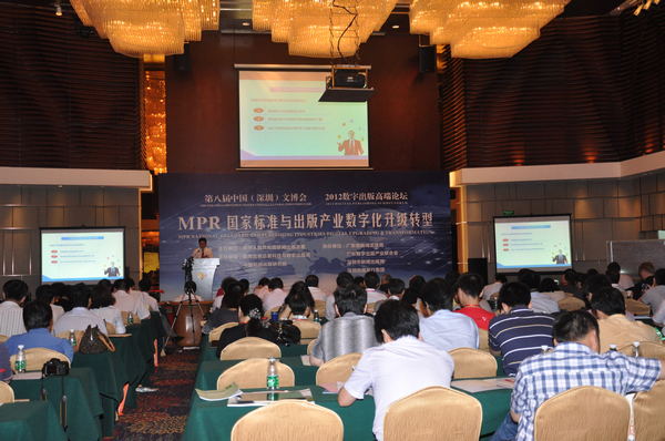 五月的鹏城,凤凰树高举起热情的花束,迎来了出席第八届文博会的国内外的代表。5月18日下午,国家新闻出版总署举办的2012数字出版高端论坛,在文博会分会场绿景锦江大酒店会议厅隆重举行。这是国内出版界、IT界的一次高规格联席盛会。论坛主题为“MPR国家标准与出版产业数字化升级转型”,出席的领导有新闻出版总署副署长孙寿山、国家标准化管理委员会副主任石保权、深圳市副市长吴以环、新闻出版总署科技与数字出版司司长张毅君等。ISDL国际标准制定工作组专家、150多位来自全国各大出版单位和权威媒体记者出席了论坛。嘉宾阵容中,有30多位来自科技界和互联网、电信阅读出版的“国内IT巨头”,方正集团、科大讯飞、龙源数字传媒、中国电信阅读、中国移动手机阅读、中国联通阅读、中文在线、上海张江数字出版、同方知网等著名企业的代表均应邀出席。