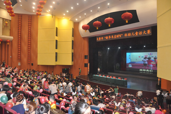 7月20日,山东省文登市委宣传部、妇联、教育局、文广新局和市报社联合举办的“新华书店MPR杯”首届幼儿童话大赛在文登市市民文化中心举办,全市35家幼儿园精选出36个优秀节目参加角逐。市教育局副局长刘新波主持,市委宣传部副部长王永利、市妇联副主席毕庶静、文广新局副局长刘辉、文登日报社副主编林涛出席开幕式,新华书店总经理李令光等做为赞助单位代表参加活动。