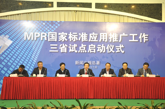 为贯彻落实党的十八关于“促进文化和科技融合发展,发展新型文化业态”的任务要求,配合重大产业升级项目,促进数字复合出版技术产业应用,推进《MPR出版物》系列国家标准实施,规范MPR出版物的出版,2012年12月12-13日,新闻出版总署在珠海举办MPR国家标准应用推广工作三省试点启动仪式暨标准培训班。