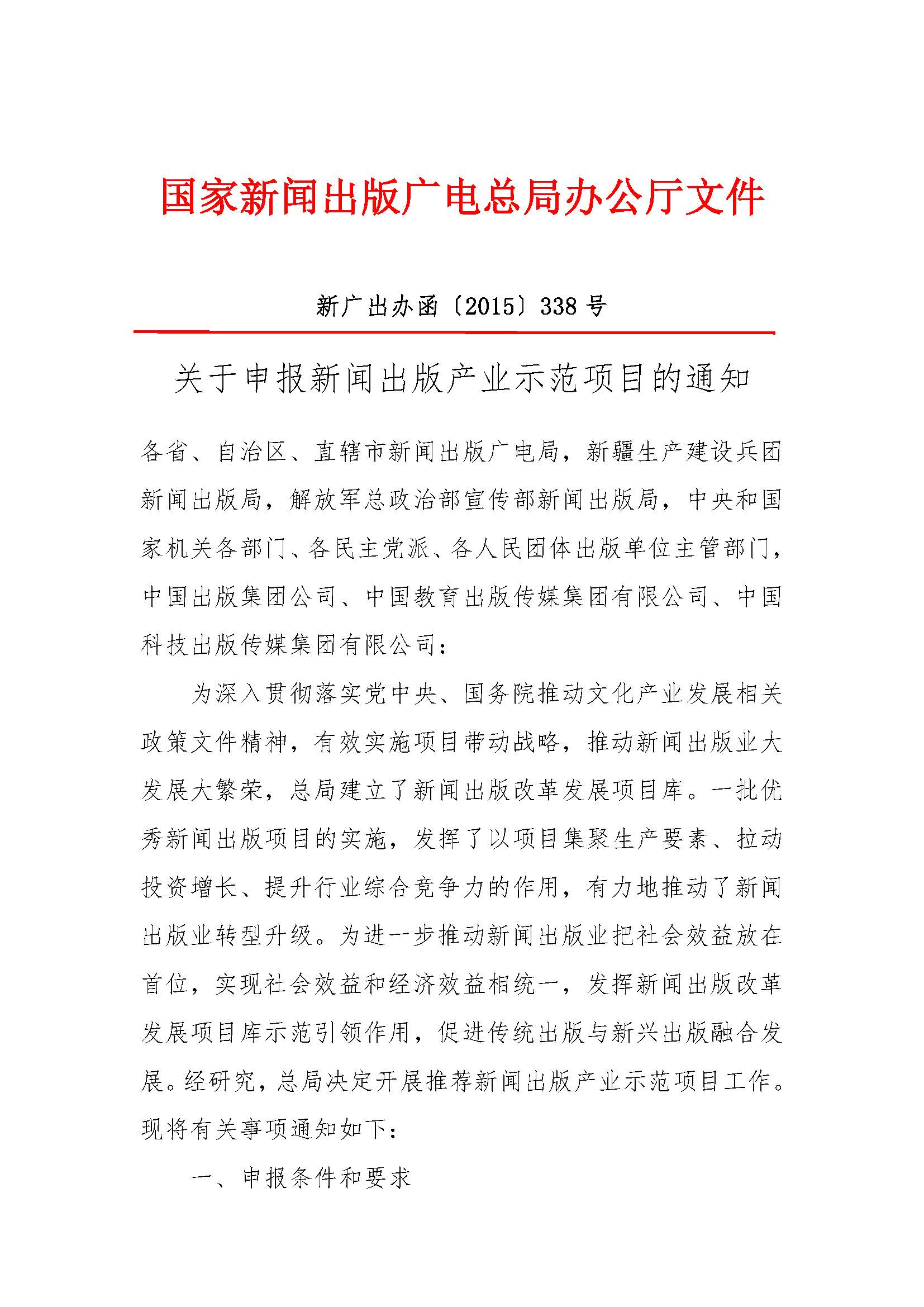 关于申报新闻出版产业示范项目的通知 新广出办函