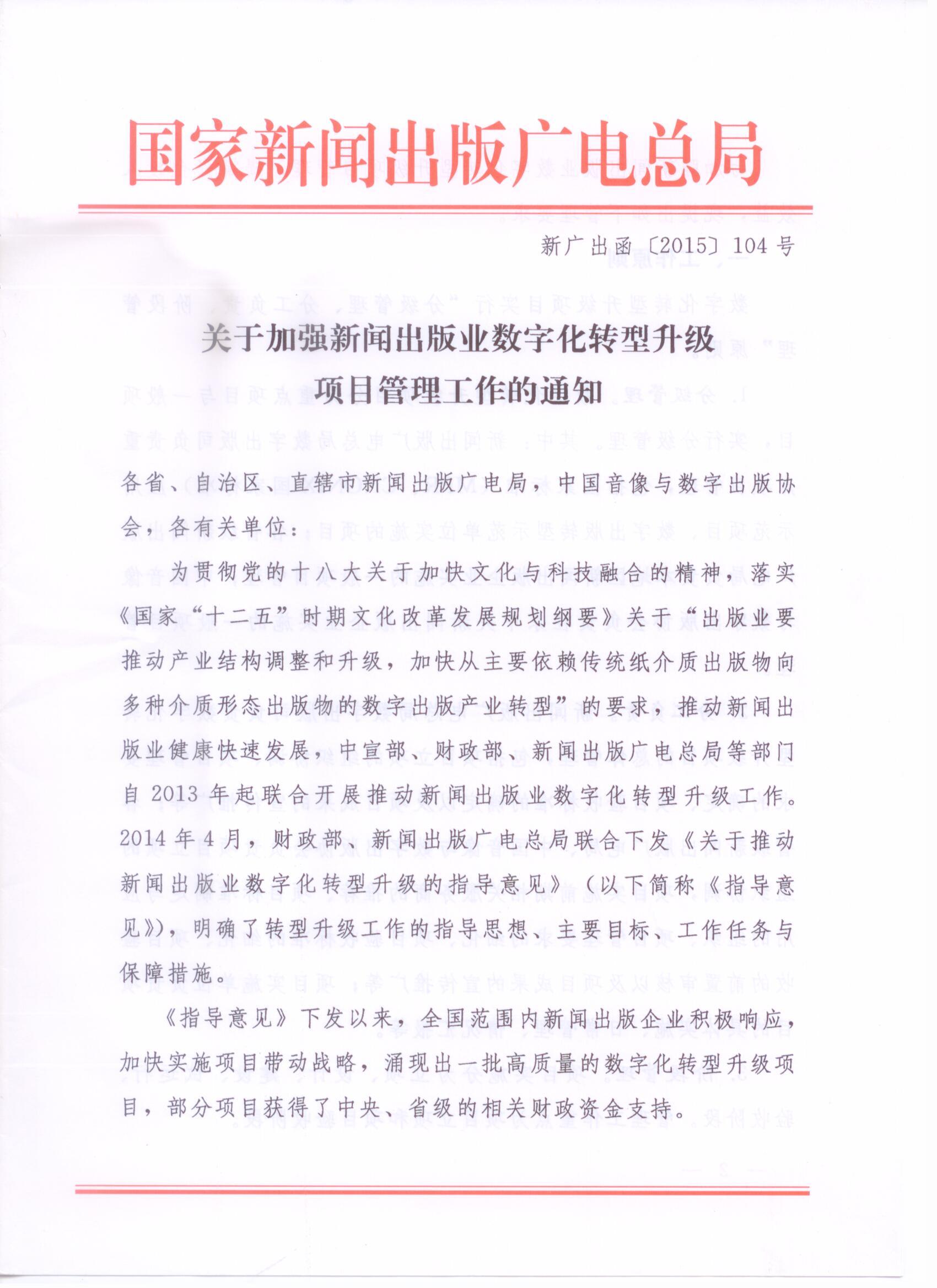 关于加强新闻出版业数字化转型升级项目管理工作的通知